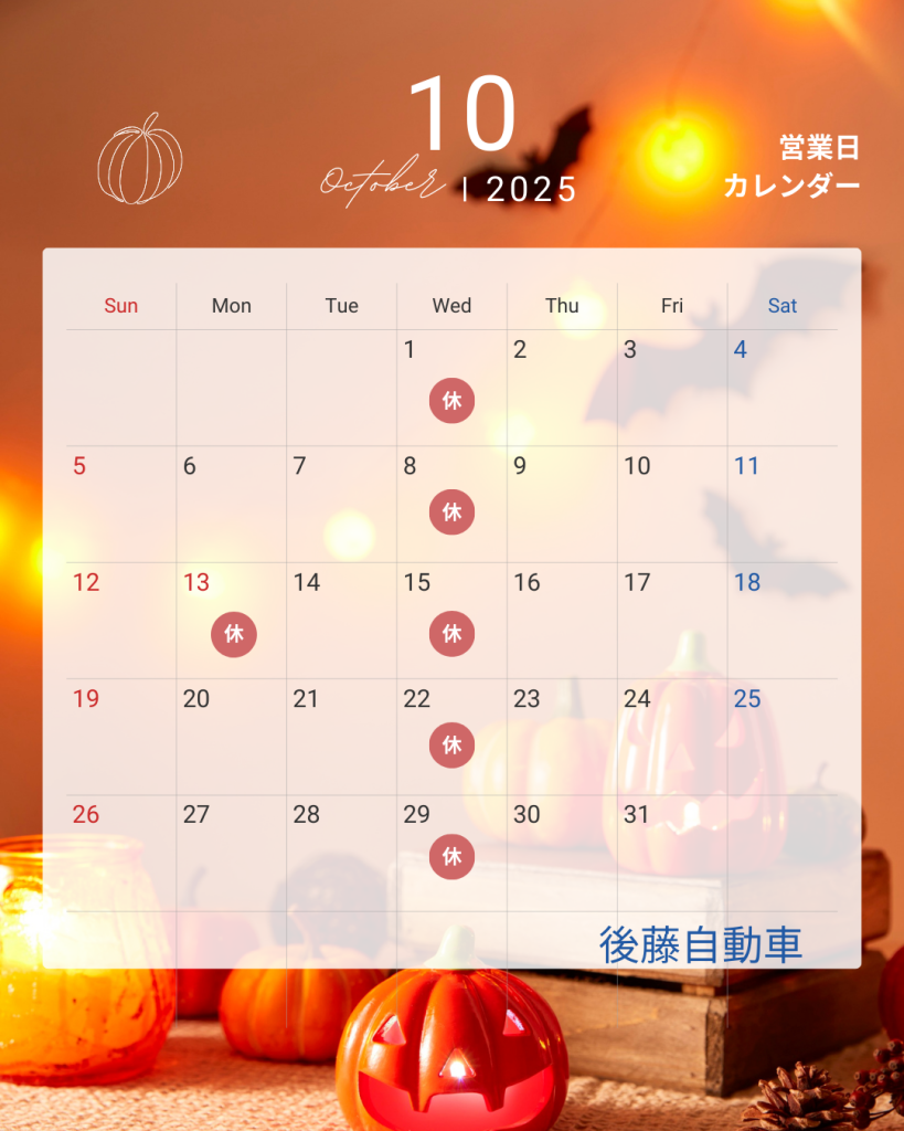 ※毎週水曜日:10月1日、 8日、15日、22日、29日は定休日となります